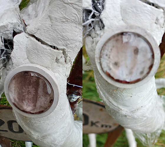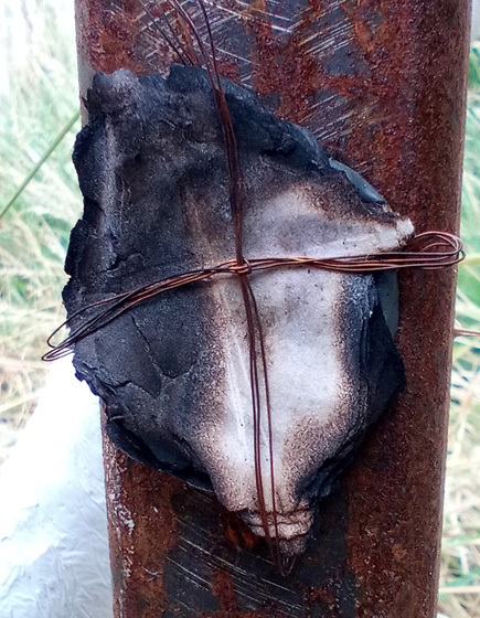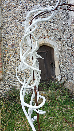 I questioned the meaning of belief. For me it is a personal journey – one that enhances my own perception of truth. Not only the here and now but something beyond that – something that is greater than ourselves. Inside a church, we celebrate this. My sculpture echoes the shape of the doorway. The branch like elements symbolise the cycle of birth, death and rebirth. I have added elements that explore my journey. Some I have collected on my way around the world.